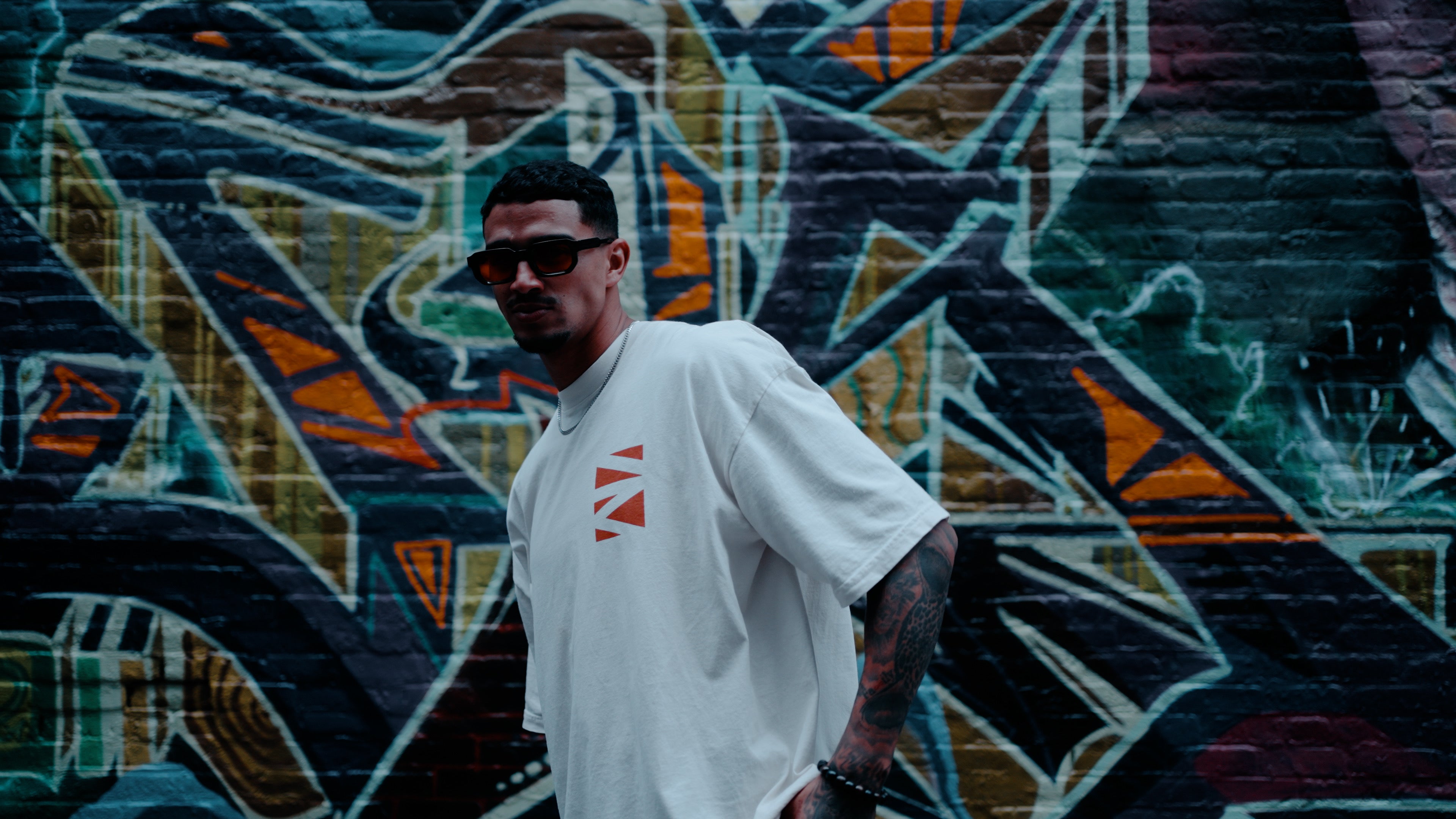 A heavyweight cotton tee with a structured mock neck and subtle branding. Designed for form, comfort, and quiet versatility.